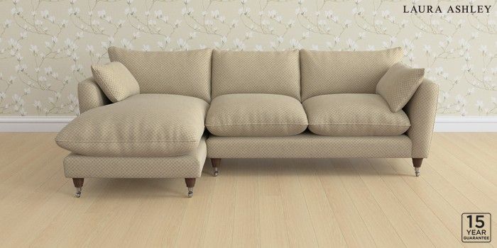 6.12.1 Buy Casterton by Laura Ashley Medium Sofa Chaise - Left Hand Chequers Hazelnut Natural Low Chrome Castor - Chestnut from the Next UK online shop Click here to use our accessible website