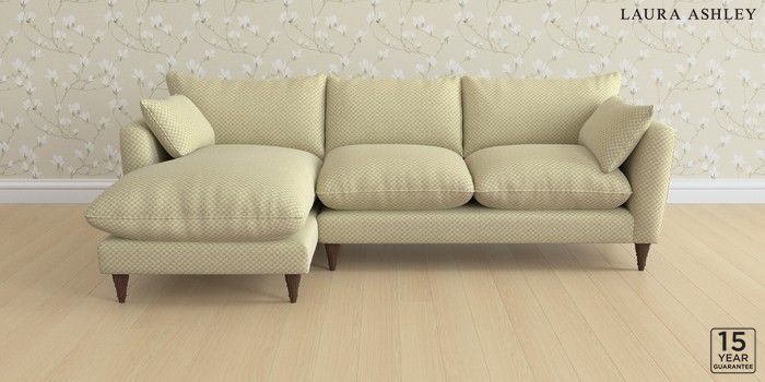 6.12.1 Buy Casterton by Laura Ashley Medium Sofa Chaise - Left Hand Chequers Hedgerow Green Low Turned - Chestnut from the Next UK online shop Click here to use our accessible website
