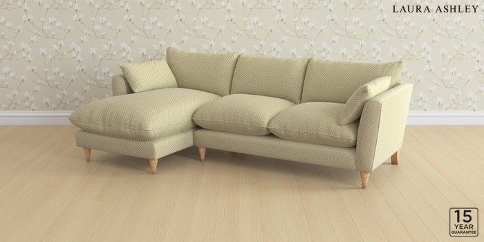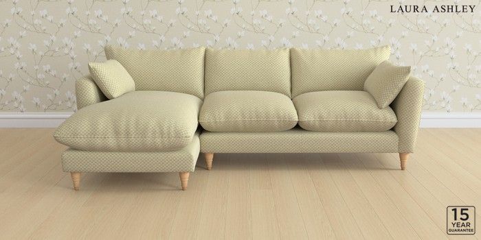 6.12.1 Buy Casterton by Laura Ashley Medium Sofa Chaise - Left Hand Chequers Hedgerow Green Low Turned - Light Oak from the Next UK online shop Click here to use our accessible website