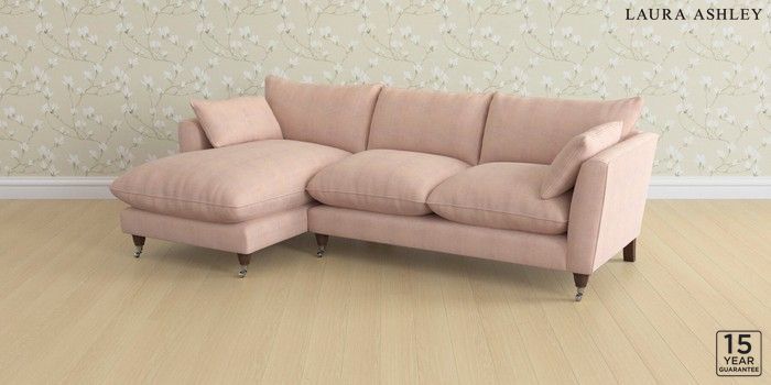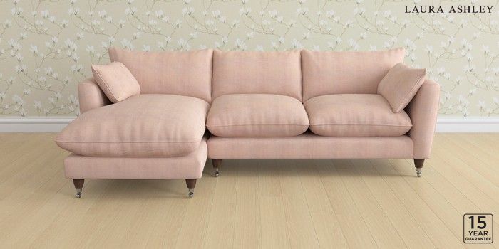 6.12.1 Buy Casterton by Laura Ashley Medium Sofa Chaise - Left Hand Edwin Chenille Blush Pink Low Chrome Castor - Chestnut from the Next UK online shop Click here to use our accessible website