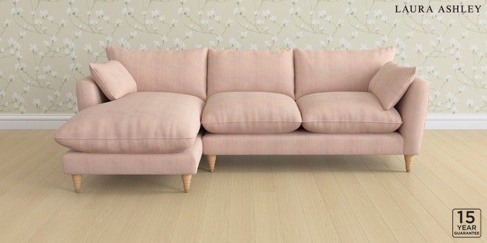 6.12.1 Buy Casterton by Laura Ashley Medium Sofa Chaise - Left Hand Edwin Chenille Blush Pink Low Turned - Light Oak from the Next UK online shop Click here to use our accessible website