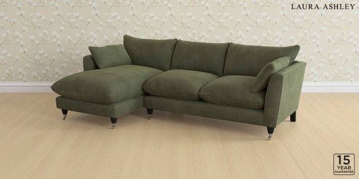 6.12.1 Buy Casterton by Laura Ashley Medium Sofa Chaise - Left Hand Edwin Chenille Hedgerow Green Low Chrome Castor - Black from the Next UK online shop Click here to use our accessible website