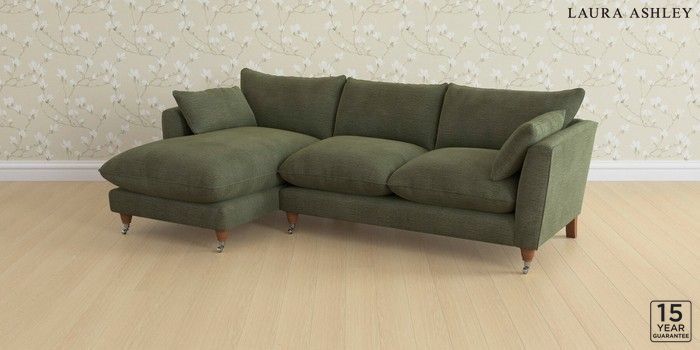 6.12.1 Buy Casterton by Laura Ashley Medium Sofa Chaise - Left Hand Edwin Chenille Hedgerow Green Low Chrome Castor - Teak from the Next UK online shop Click here to use our accessible website
