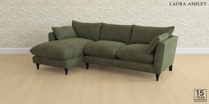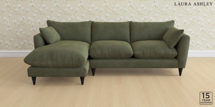 6.12.1 Buy Casterton by Laura Ashley Medium Sofa Chaise - Left Hand Edwin Chenille Hedgerow Green Low Turned - Black from the Next UK online shop Click here to use our accessible website