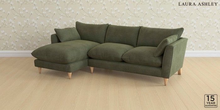 6.12.1 Buy Casterton by Laura Ashley Medium Sofa Chaise - Left Hand Edwin Chenille Hedgerow Green Low Turned - Light Oak from the Next UK online shop Click here to use our accessible website