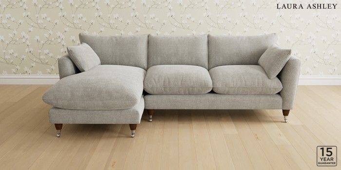 6.12.1 Buy Casterton by Laura Ashley Medium Sofa Chaise - Left Hand Edwin Chenille Silver Grey Low Chrome Castor - Teak from the Next UK online shop Click here to use our accessible website