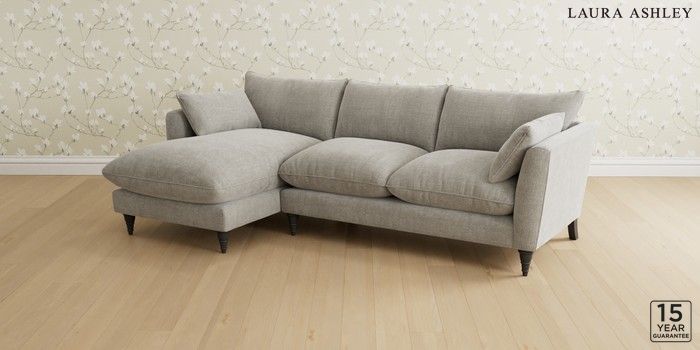 6.12.1 Buy Casterton by Laura Ashley Medium Sofa Chaise - Left Hand Edwin Chenille Silver Grey Low Turned - Black from the Next UK online shop Click here to use our accessible website