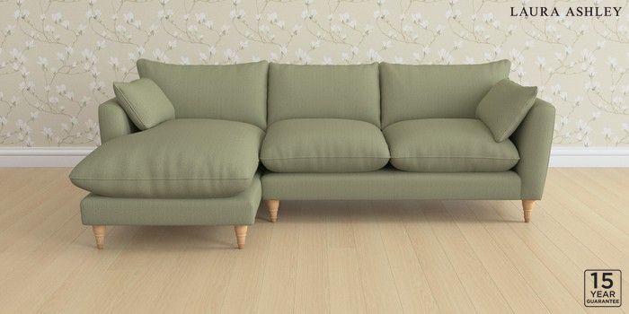 6.12.1 Buy Casterton by Laura Ashley Medium Sofa Chaise - Left Hand Edwin Herringbone Hedgerow Green Low Turned - Light Oak from the Next UK online shop Click here to use our accessible website