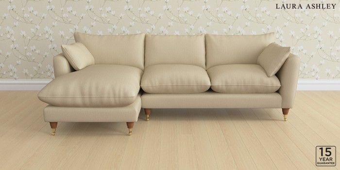 6.12.1 Buy Casterton by Laura Ashley Medium Sofa Chaise - Left Hand Edwin Herringbone Natural Low Brass Castor - Teak from the Next UK online shop Click here to use our accessible website