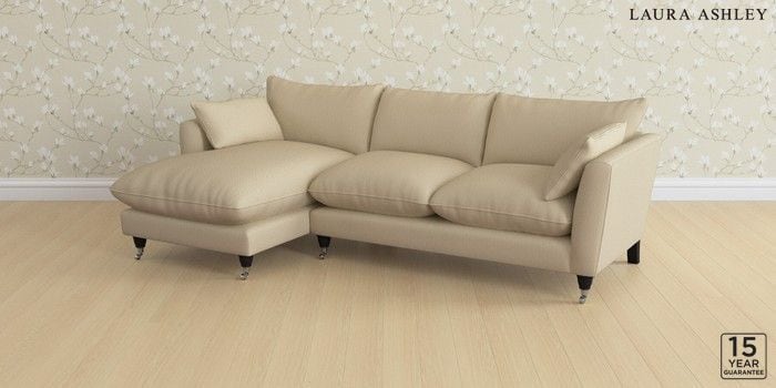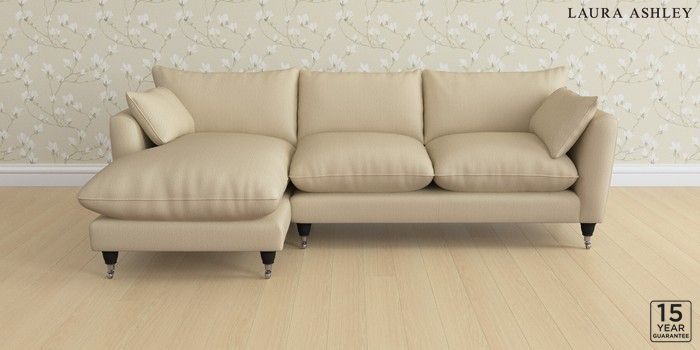 6.12.1 Buy Casterton by Laura Ashley Medium Sofa Chaise - Left Hand Edwin Herringbone Natural Low Chrome Castor - Black from the Next UK online shop Click here to use our accessible website