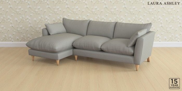 6.12.1 Buy Casterton by Laura Ashley Medium Sofa Chaise - Left Hand Edwin Herringbone Pale Steel Grey Low Turned - Light Oak from the Next UK online shop Click here to use our accessible website