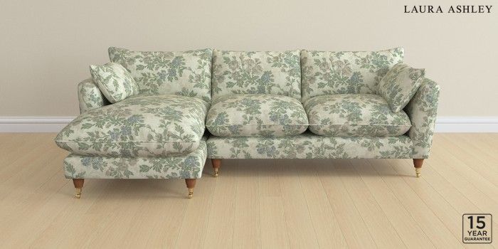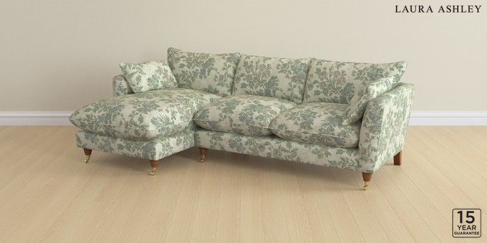 6.12.1 Buy Casterton by Laura Ashley Medium Sofa Chaise - Left Hand Ellerby Seaspray Blue Low Brass Castor - Teak from the Next UK online shop Click here to use our accessible website