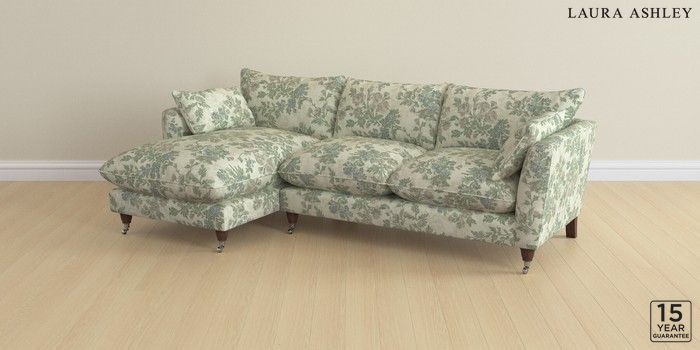 6.12.1 Buy Casterton by Laura Ashley Medium Sofa Chaise - Left Hand Ellerby Seaspray Blue Low Chrome Castor - Chestnut from the Next UK online shop Click here to use our accessible website