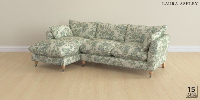 6.12.1 Buy Casterton by Laura Ashley Medium Sofa Chaise - Left Hand Ellerby Seaspray Blue Low Chrome Castor - Light Oak from the Next UK online shop Click here to use our accessible website