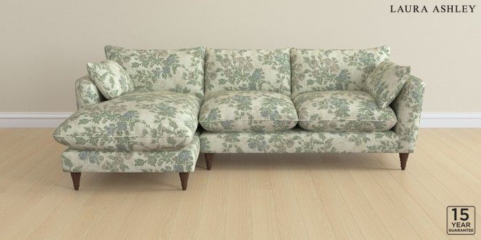 6.12.1 Buy Casterton by Laura Ashley Medium Sofa Chaise - Left Hand Ellerby Seaspray Blue Low Turned - Chestnut from the Next UK online shop Click here to use our accessible website