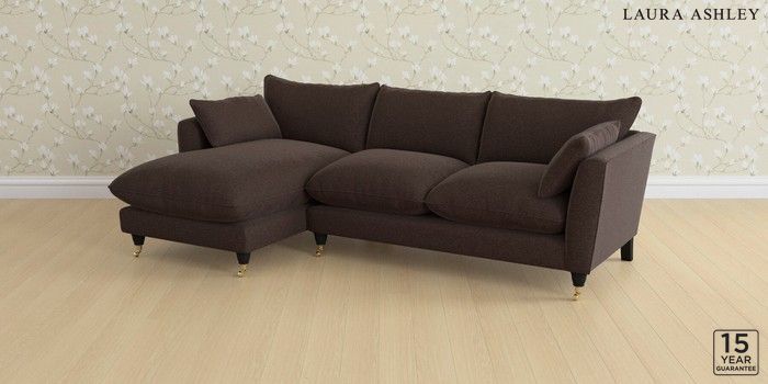 6.12.1 Buy Casterton by Laura Ashley Medium Sofa Chaise - Left Hand Harley Chestnut Brown Low Brass Castor - Black from the Next UK online shop Click here to use our accessible website