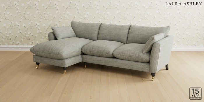 6.12.1 Buy Casterton by Laura Ashley Medium Sofa Chaise - Left Hand Harley Dove Grey Low Brass Castor - Black from the Next UK online shop Click here to use our accessible website