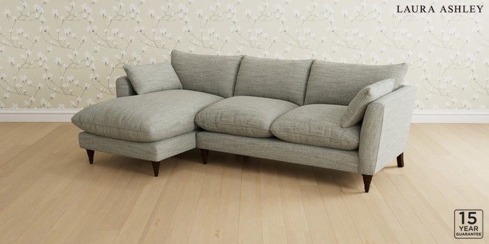 6.12.1 Buy Casterton by Laura Ashley Medium Sofa Chaise - Left Hand Harley Dove Grey Low Turned - Chestnut from the Next UK online shop Click here to use our accessible website