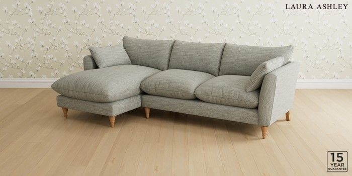 6.12.1 Buy Casterton by Laura Ashley Medium Sofa Chaise - Left Hand Harley Dove Grey Low Turned - Light Oak from the Next UK online shop Click here to use our accessible website