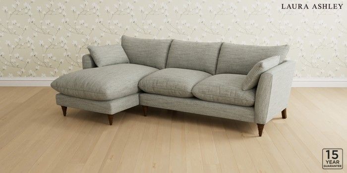 6.12.1 Buy Casterton by Laura Ashley Medium Sofa Chaise - Left Hand Harley Dove Grey Low Turned - Teak from the Next UK online shop Click here to use our accessible website