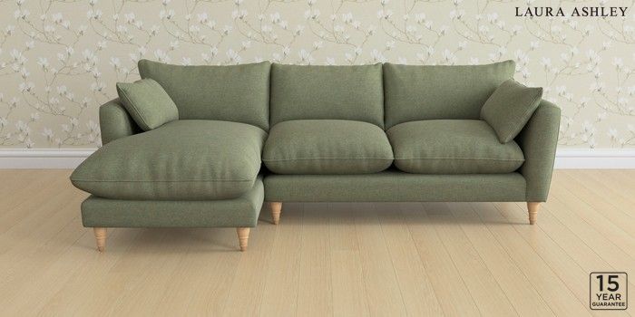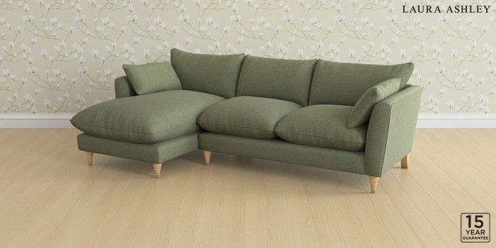 6.12.1 Buy Casterton by Laura Ashley Medium Sofa Chaise - Left Hand Harley Moss Green Low Turned - Light Oak from the Next UK online shop Click here to use our accessible website