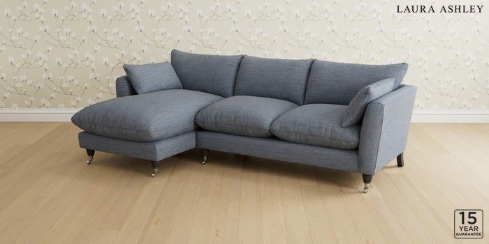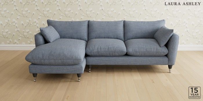 6.12.1 Buy Casterton by Laura Ashley Medium Sofa Chaise - Left Hand Harley Seaspray Blue Low Chrome Castor - Black from the Next UK online shop Click here to use our accessible website