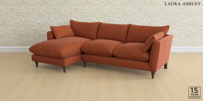 6.12.1 Buy Casterton by Laura Ashley Medium Sofa Chaise - Left Hand Harley Terracotta Orange Low Turned - Chestnut from the Next UK online shop Click here to use our accessible website