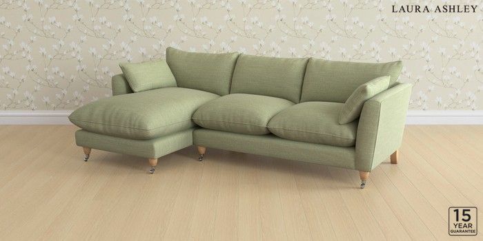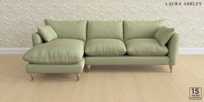 6.12.1 Buy Casterton by Laura Ashley Medium Sofa Chaise - Left Hand Kinsham Hedgerow Green Low Chrome Castor - Light Oak from the Next UK online shop Click here to use our accessible website