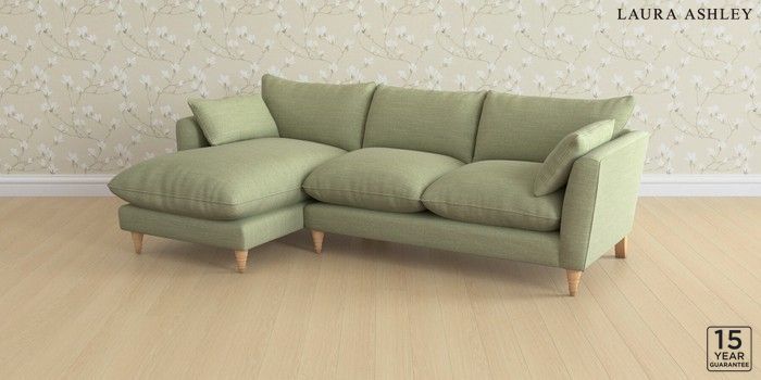 6.12.1 Buy Casterton by Laura Ashley Medium Sofa Chaise - Left Hand Kinsham Hedgerow Green Low Turned - Light Oak from the Next UK online shop Click here to use our accessible website