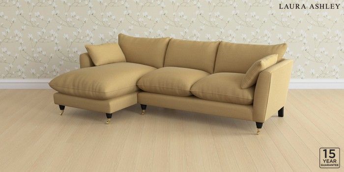 6.12.1 Buy Casterton by Laura Ashley Medium Sofa Chaise - Left Hand Kinsham Ochre Yellow Low Brass Castor - Black from the Next UK online shop Click here to use our accessible website