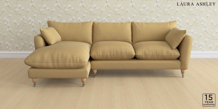 6.12.1 Buy Casterton by Laura Ashley Medium Sofa Chaise - Left Hand Kinsham Ochre Yellow Low Chrome Castor - Light Oak from the Next UK online shop Click here to use our accessible website