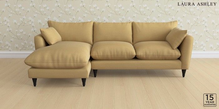 6.12.1 Buy Casterton by Laura Ashley Medium Sofa Chaise - Left Hand Kinsham Ochre Yellow Low Turned - Black from the Next UK online shop Click here to use our accessible website