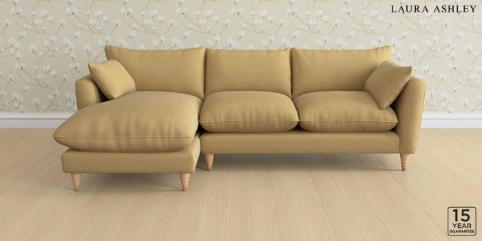 6.12.1 Buy Casterton by Laura Ashley Medium Sofa Chaise - Left Hand Kinsham Ochre Yellow Low Turned - Light Oak from the Next UK online shop Click here to use our accessible website