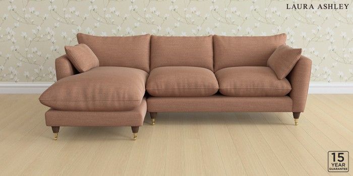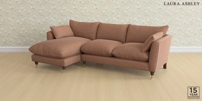 6.12.1 Buy Casterton by Laura Ashley Medium Sofa Chaise - Left Hand Kinsham Rust Orange Low Brass Castor - Chestnut from the Next UK online shop Click here to use our accessible website