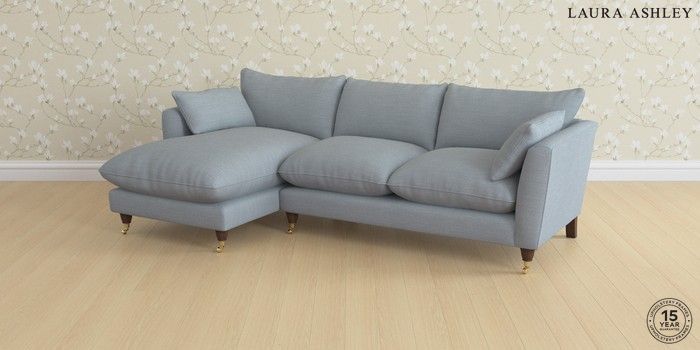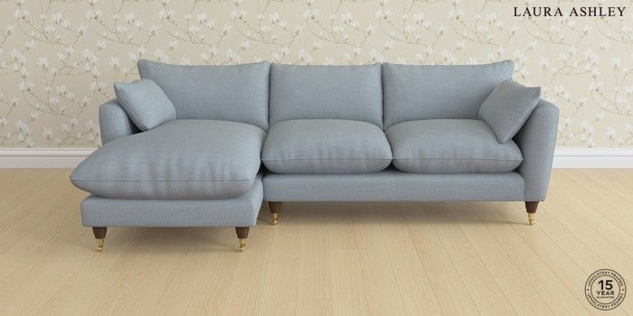 6.12.1 Buy Casterton by Laura Ashley Medium Sofa Chaise - Left Hand Kinsham Seaspray Blue Low Brass Castor - Chestnut from the Next UK online shop Click here to use our accessible website