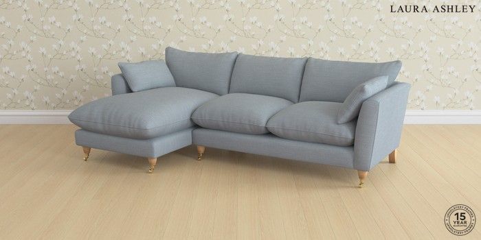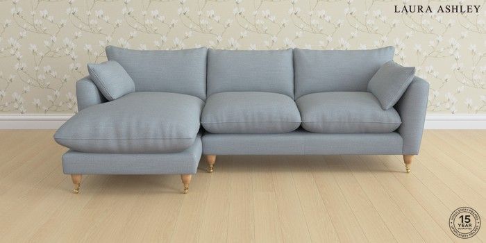 6.12.1 Buy Casterton by Laura Ashley Medium Sofa Chaise - Left Hand Kinsham Seaspray Blue Low Brass Castor - Light Oak from the Next UK online shop Click here to use our accessible website