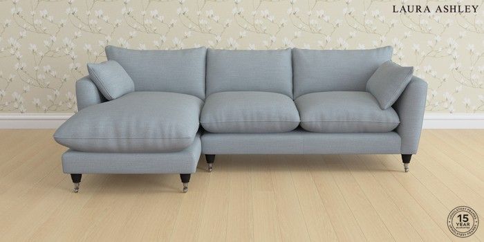 6.12.1 Buy Casterton by Laura Ashley Medium Sofa Chaise - Left Hand Kinsham Seaspray Blue Low Chrome Castor - Black from the Next UK online shop Click here to use our accessible website