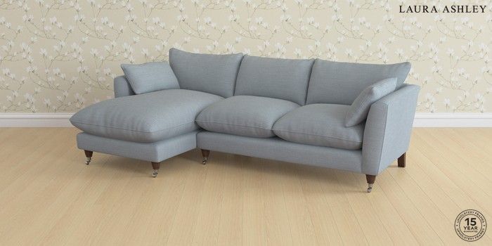 6.12.1 Buy Casterton by Laura Ashley Medium Sofa Chaise - Left Hand Kinsham Seaspray Blue Low Chrome Castor - Chestnut from the Next UK online shop Click here to use our accessible website