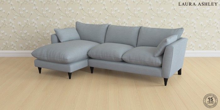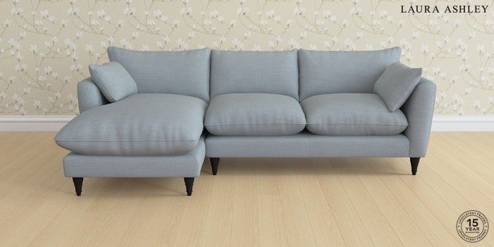 6.12.1 Buy Casterton by Laura Ashley Medium Sofa Chaise - Left Hand Kinsham Seaspray Blue Low Turned - Black from the Next UK online shop Click here to use our accessible website