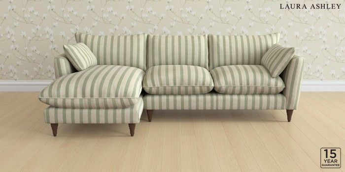 6.12.1 Buy Casterton by Laura Ashley Medium Sofa Chaise - Left Hand Kinsham Stripe Hedgerow Green Low Turned - Chestnut from the Next UK online shop Click here to use our accessible website