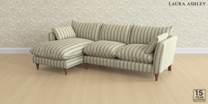 6.12.1 Buy Casterton by Laura Ashley Medium Sofa Chaise - Left Hand Kinsham Stripe Hedgerow Green Low Turned - Teak from the Next UK online shop Click here to use our accessible website