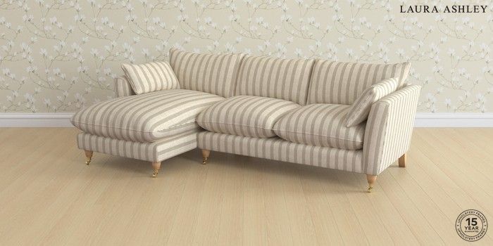 6.12.1 Buy Casterton by Laura Ashley Medium Sofa Chaise - Left Hand Kinsham Stripe Natural Low Brass Castor - Light Oak from the Next UK online shop Click here to use our accessible website