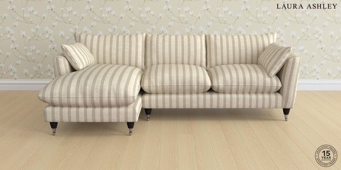 6.12.1 Buy Casterton by Laura Ashley Medium Sofa Chaise - Left Hand Kinsham Stripe Natural Low Chrome Castor - Black from the Next UK online shop Click here to use our accessible website
