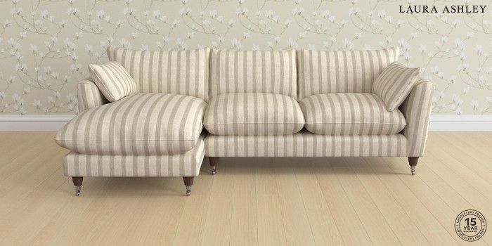 6.12.1 Buy Casterton by Laura Ashley Medium Sofa Chaise - Left Hand Kinsham Stripe Natural Low Chrome Castor - Chestnut from the Next UK online shop Click here to use our accessible website