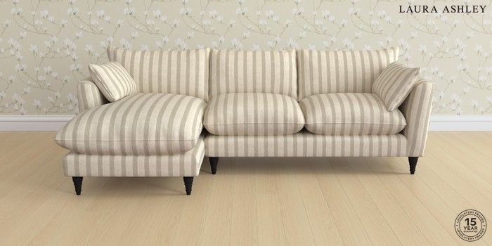 6.12.1 Buy Casterton by Laura Ashley Medium Sofa Chaise - Left Hand Kinsham Stripe Natural Low Turned - Black from the Next UK online shop Click here to use our accessible website
