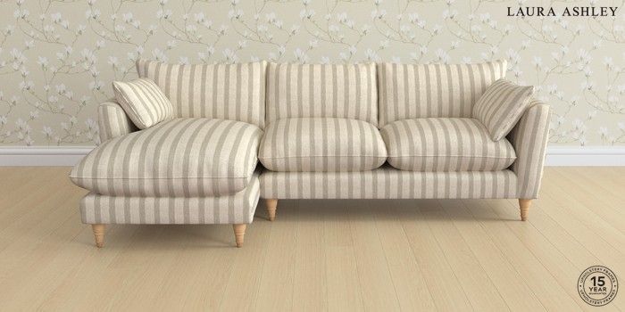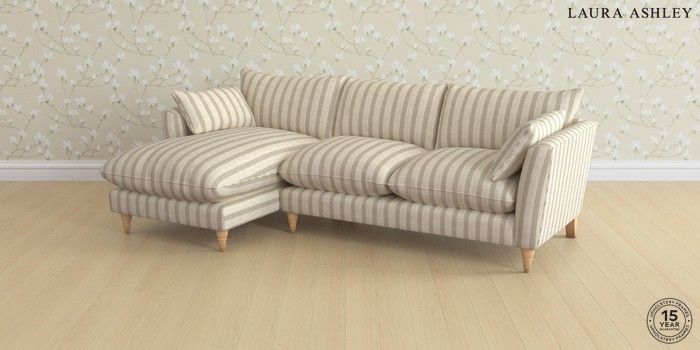 6.12.1 Buy Casterton by Laura Ashley Medium Sofa Chaise - Left Hand Kinsham Stripe Natural Low Turned - Light Oak from the Next UK online shop Click here to use our accessible website