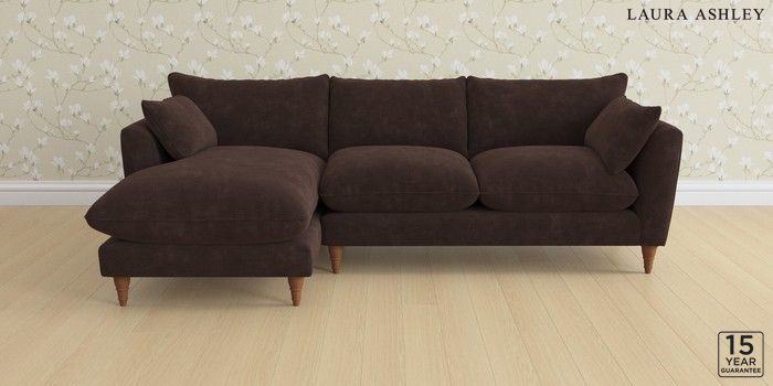 6.12.1 Buy Casterton by Laura Ashley Medium Sofa Chaise - Left Hand Alwyn Velvet Chocolate Brown Low Turned - Teak from the Next UK online shop Click here to use our accessible website