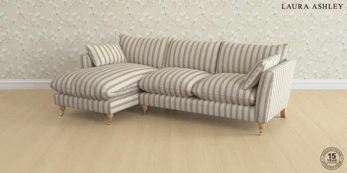 6.12.1 Buy Casterton by Laura Ashley Medium Sofa Chaise - Left Hand Kinsham Stripe Seaspray Blue Low Brass Castor - Light Oak from the Next UK online shop Click here to use our accessible website