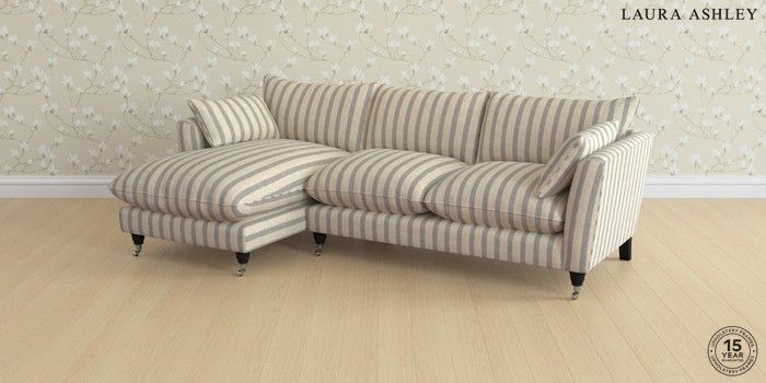 6.12.1 Buy Casterton by Laura Ashley Medium Sofa Chaise - Left Hand Kinsham Stripe Seaspray Blue Low Chrome Castor - Black from the Next UK online shop Click here to use our accessible website