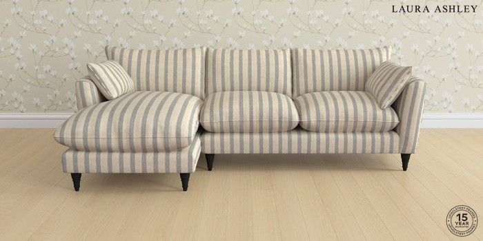 6.12.1 Buy Casterton by Laura Ashley Medium Sofa Chaise - Left Hand Kinsham Stripe Seaspray Blue Low Turned - Black from the Next UK online shop Click here to use our accessible website